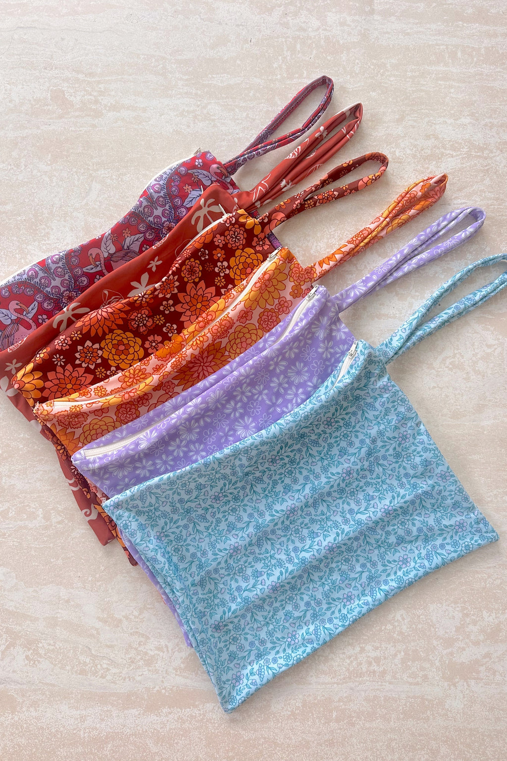Get ready to pack your beach bag with the ultimate stretchy carryall pouch! Perfect for storing all your beach essentials, from snacks and nappies to sunscreens. Made from dead stock fabrics featuring our past prints!
