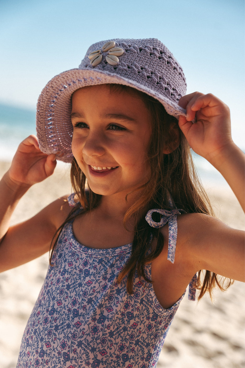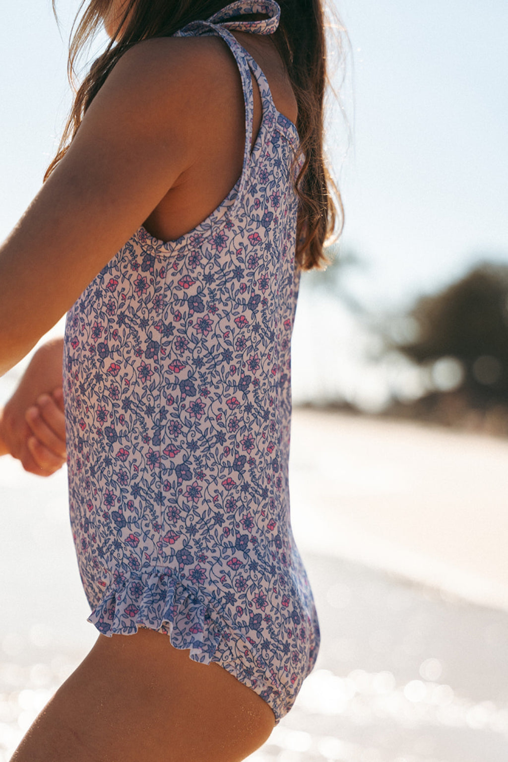 Our girls one piece swimsuit is made for little beach lovers. Featuring bow tie straps and playful frill details on the hip, this full piece combines comfort with coastal charm. Crafted from eco-friendly recycled fabric with UPF 50+ protection, it’s perfect for pool parties, sandy adventures, and long summer days by the water.